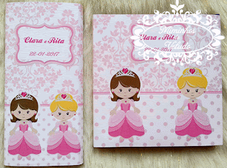 Lembranças totalmente personalizadas de acordo com o evento, neste caso, para celebrar o aniversário de duas princesinhas gémeas ... uma mini tablete e um caixa de lápis coloridos.